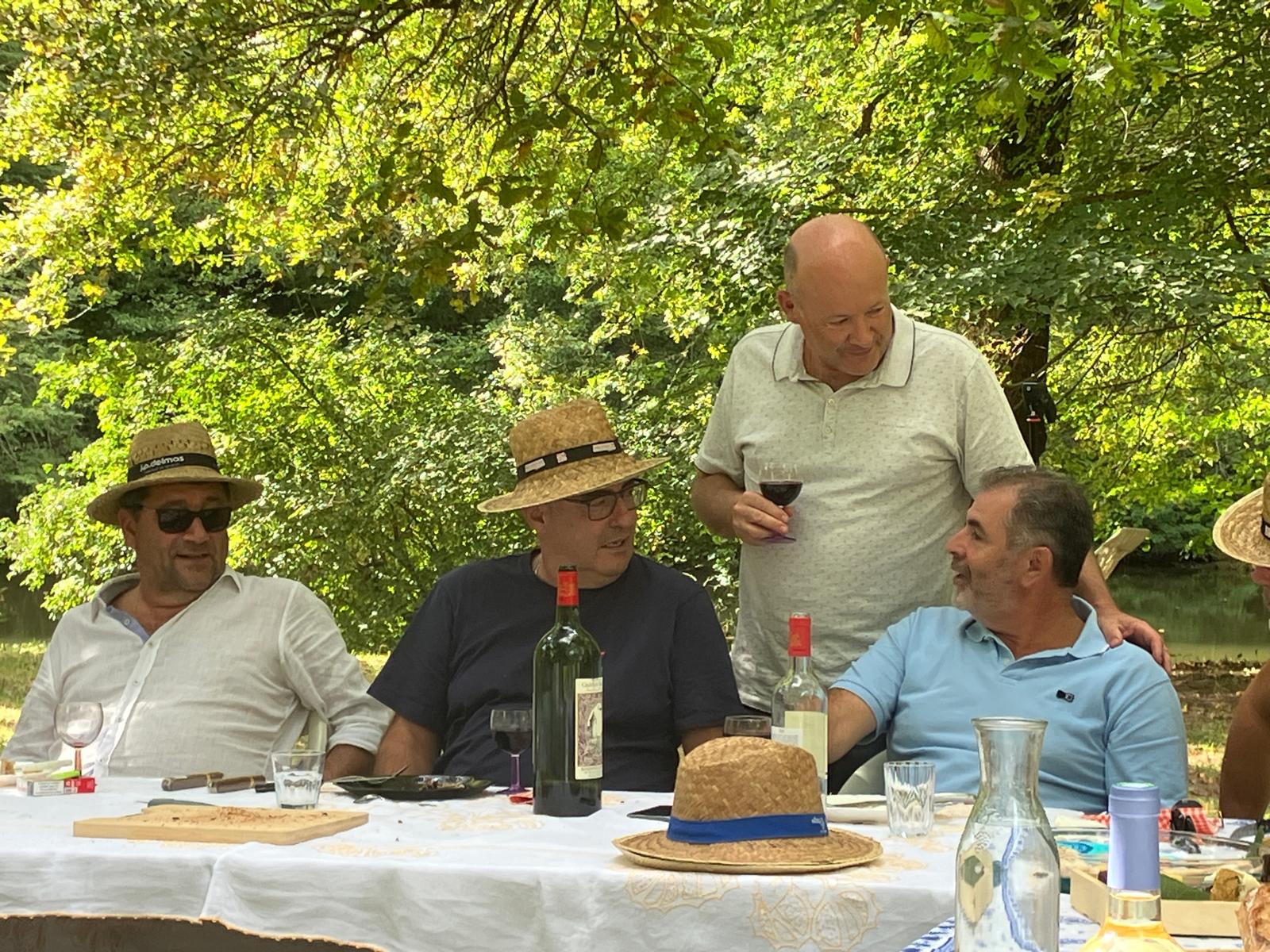 Le Bât K de la 139e promo s’est retrouvé au bord du Viaur, au magnifique Pont de Cirou, pour célébrer une crémaillère pas comme les autres, organisée de main de maître par Fabrice Hermet.
